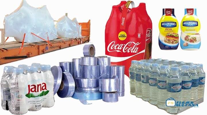 Polietileno: ideal para formar paquetes con cargas semi-pesadas. No tiene tanto brillo como la poliofelina, pero sí una gran resistencia a la sujeción del producto o artículo que quieras empacar. Es muy recomendado para la industria embotelladora.